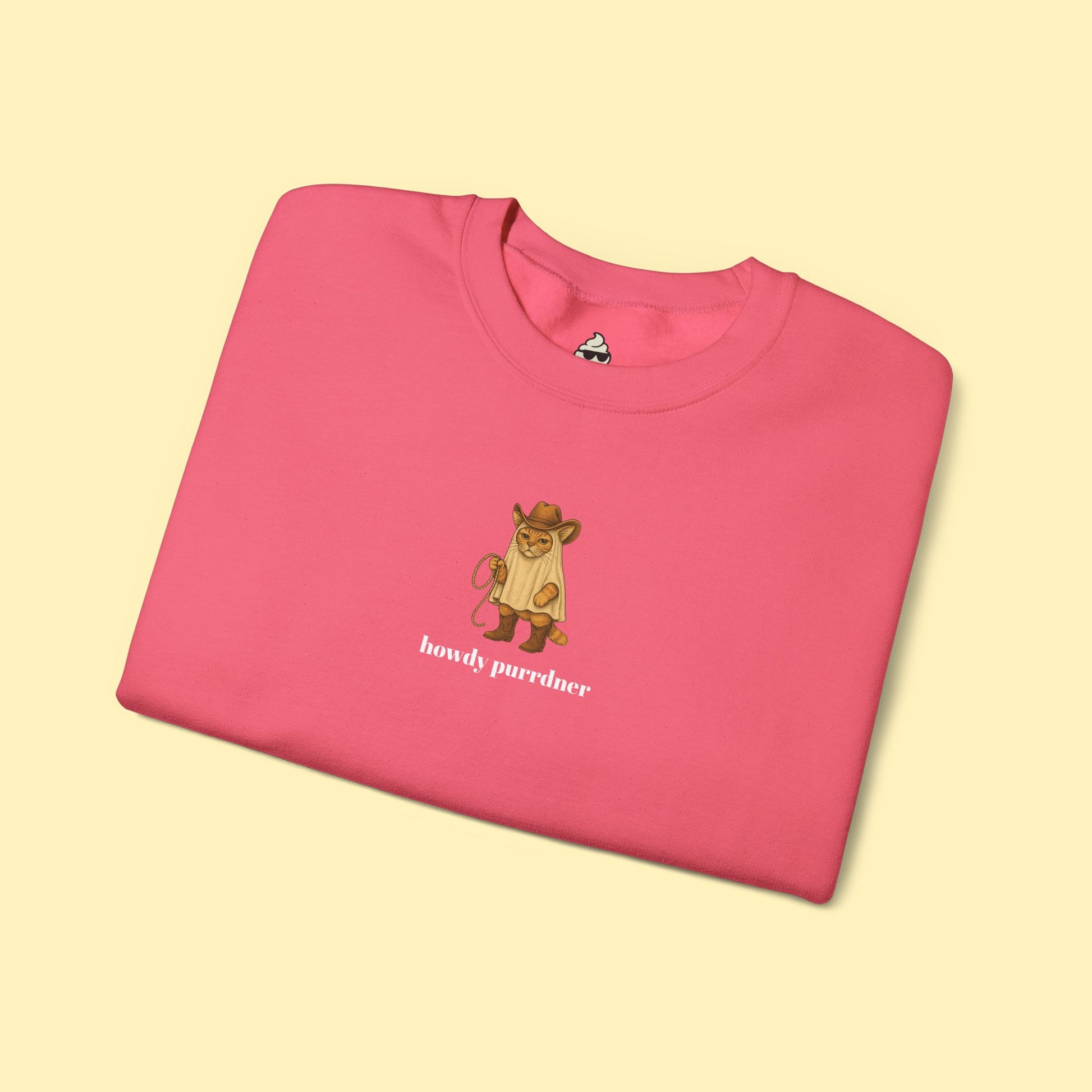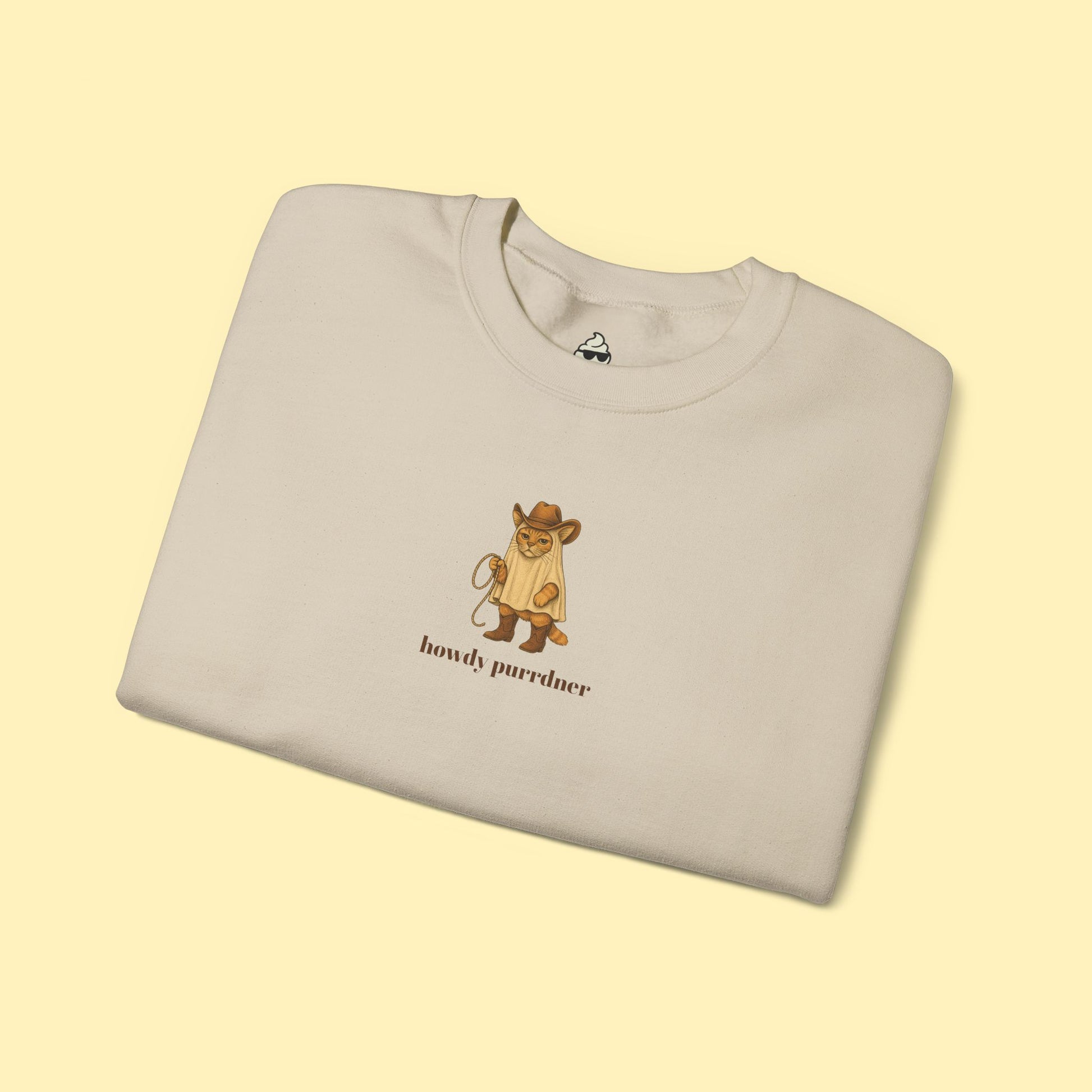 ππ» This Halloween, saddle up with the Howdy Purrdner Crewneck β a cozy, playful sweatshirt featuring a cowboy cat ready for the wild west (or the trick-or-treat trail). Perfect for cat lovers, pun fans, and anyone who wants a spooky-but-cute fall outfit.